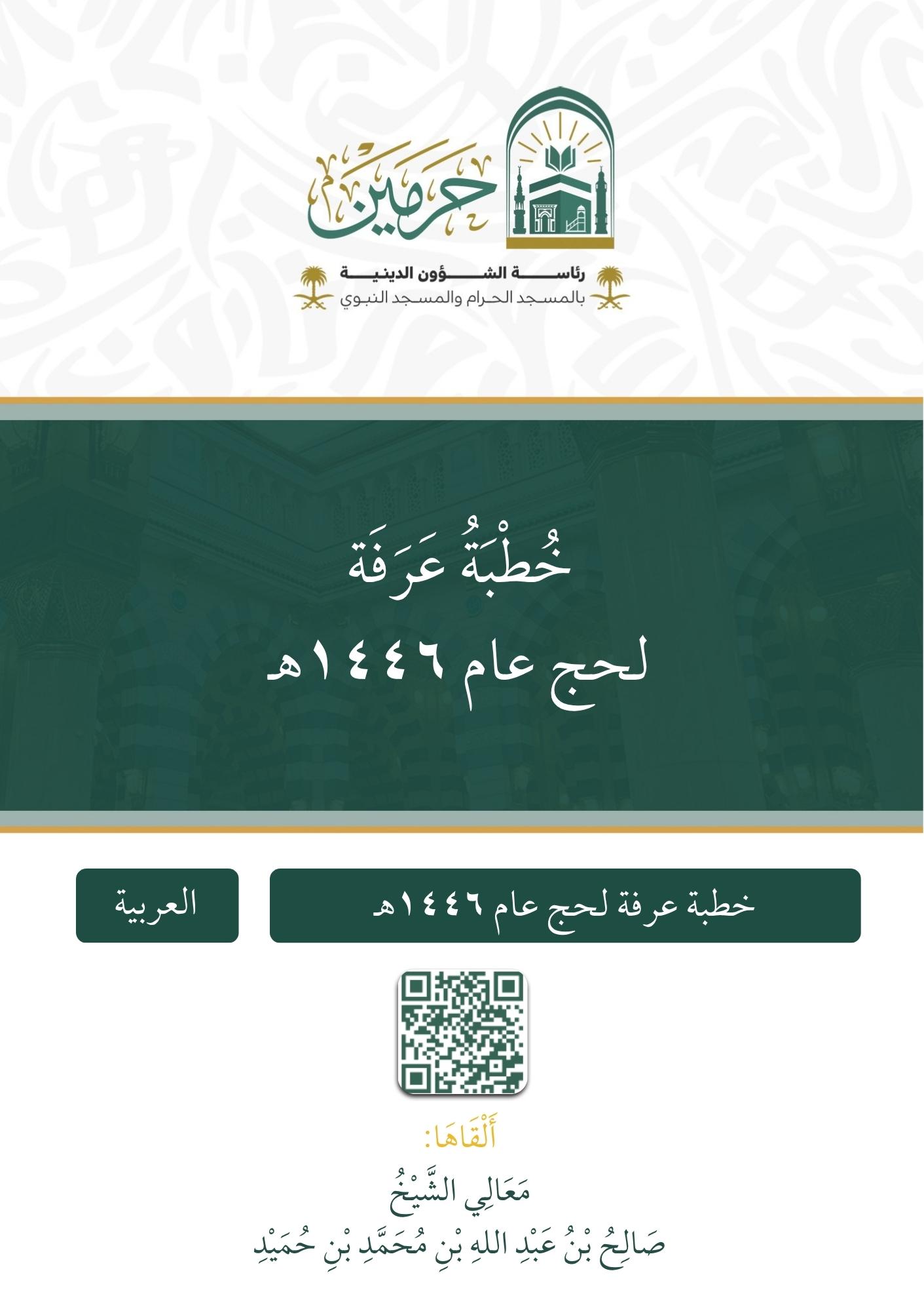خطبة عرفة ألقاها معالي الشيخ صالح بن عبد الله بن محمد حميد لحج عام 1446 هـ