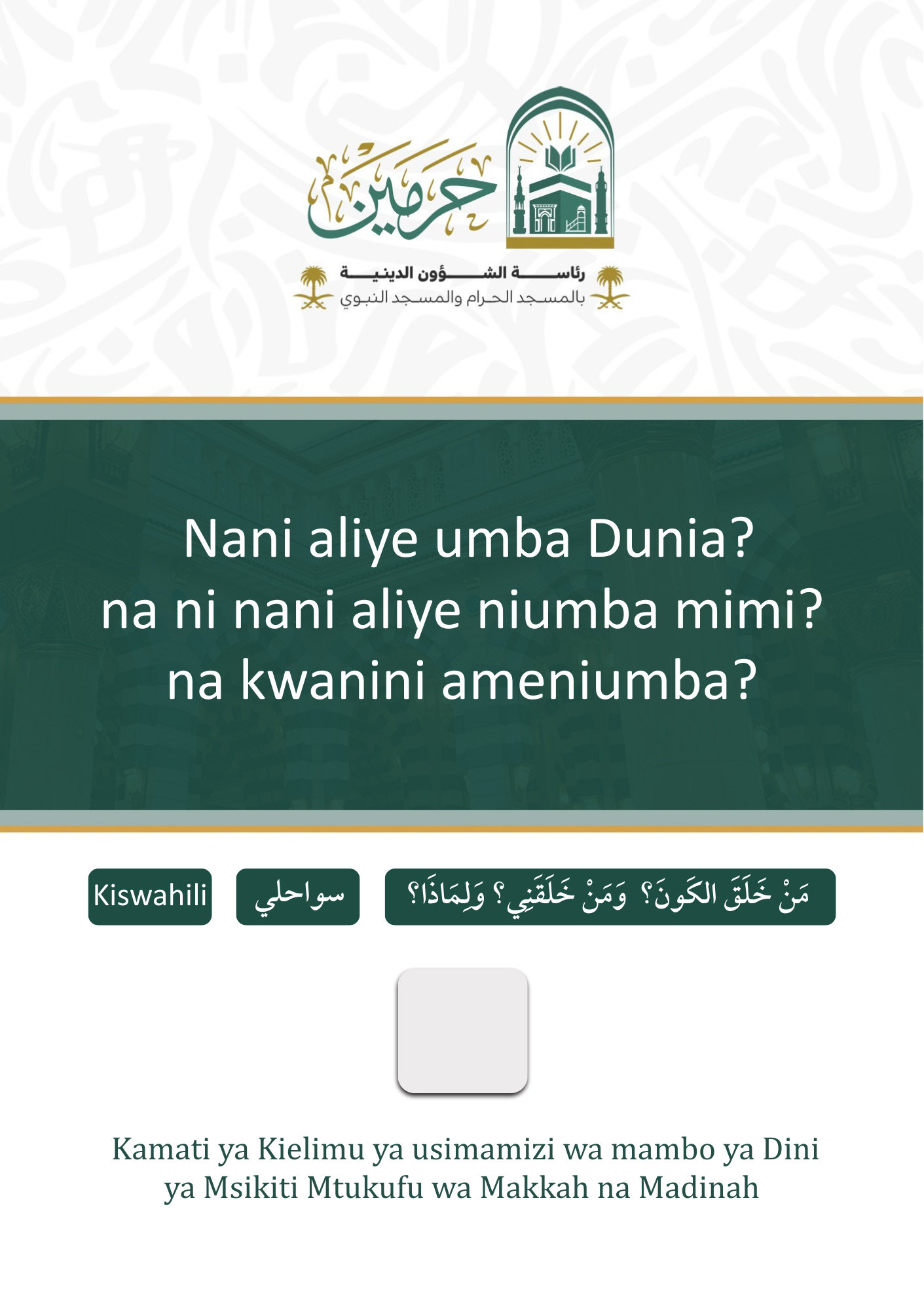 Kitabu "Nani aliyeumba Dunia? na ni nani aliyeniumba, na kwa ajili gani? ki...